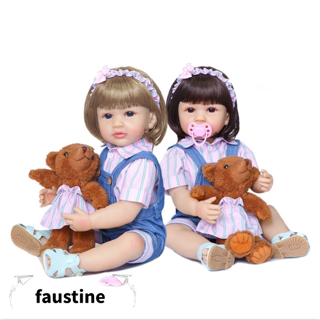 55cm Flexible Short Hair Girl Soft Silicone Doll Babydoll Two Hair Colors Baby Blue Jeans Girl Shopee Indonesia