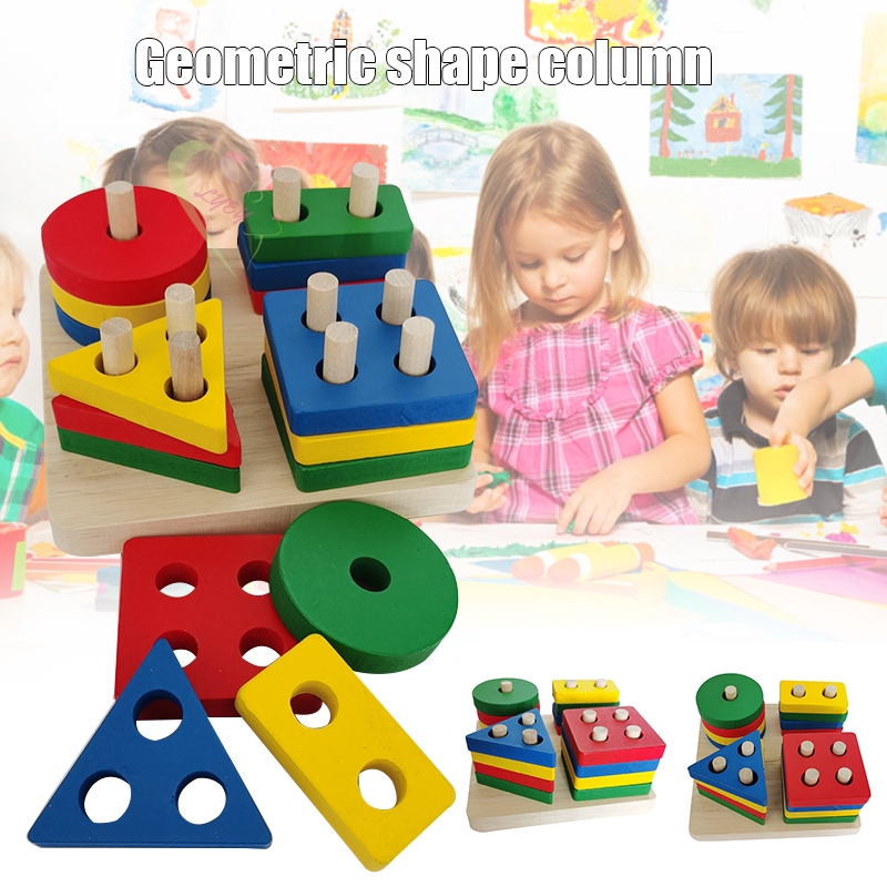 Le Educational Wooden Geometric Sorting Board Blocks Montessori Kids Baby Educational Toys Building Blocks Id Shopee Indonesia