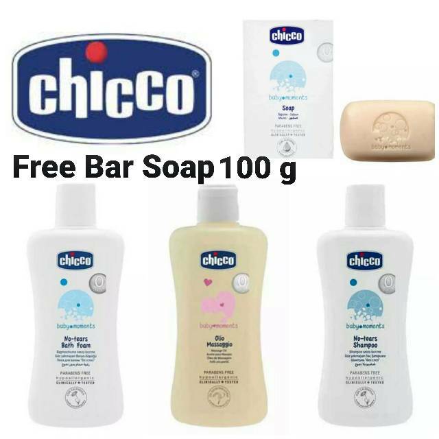 Chicco Baby Moment Bath Foam 200 Ml Shampoo 200 Ml Messege Oil 200 Ml Free Bar Soap 100g Shopee Indonesia