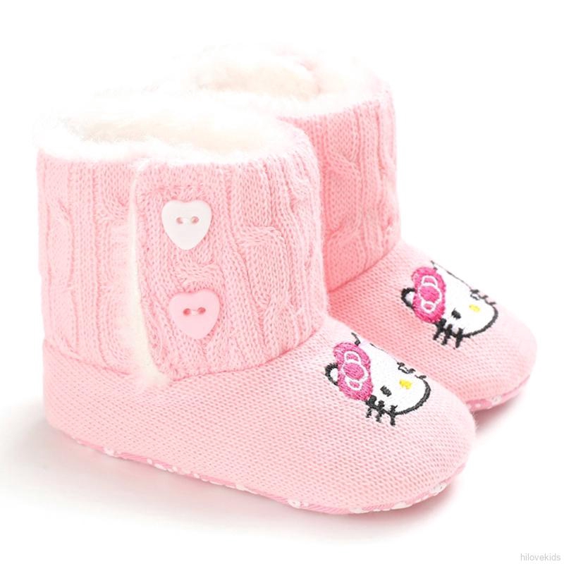 Lok0607 Kitty Cat Cartoon Cute Kids Boots Baby Girls Warm Snow Soft Sole Shoes 0 18m Shopee Indonesia
