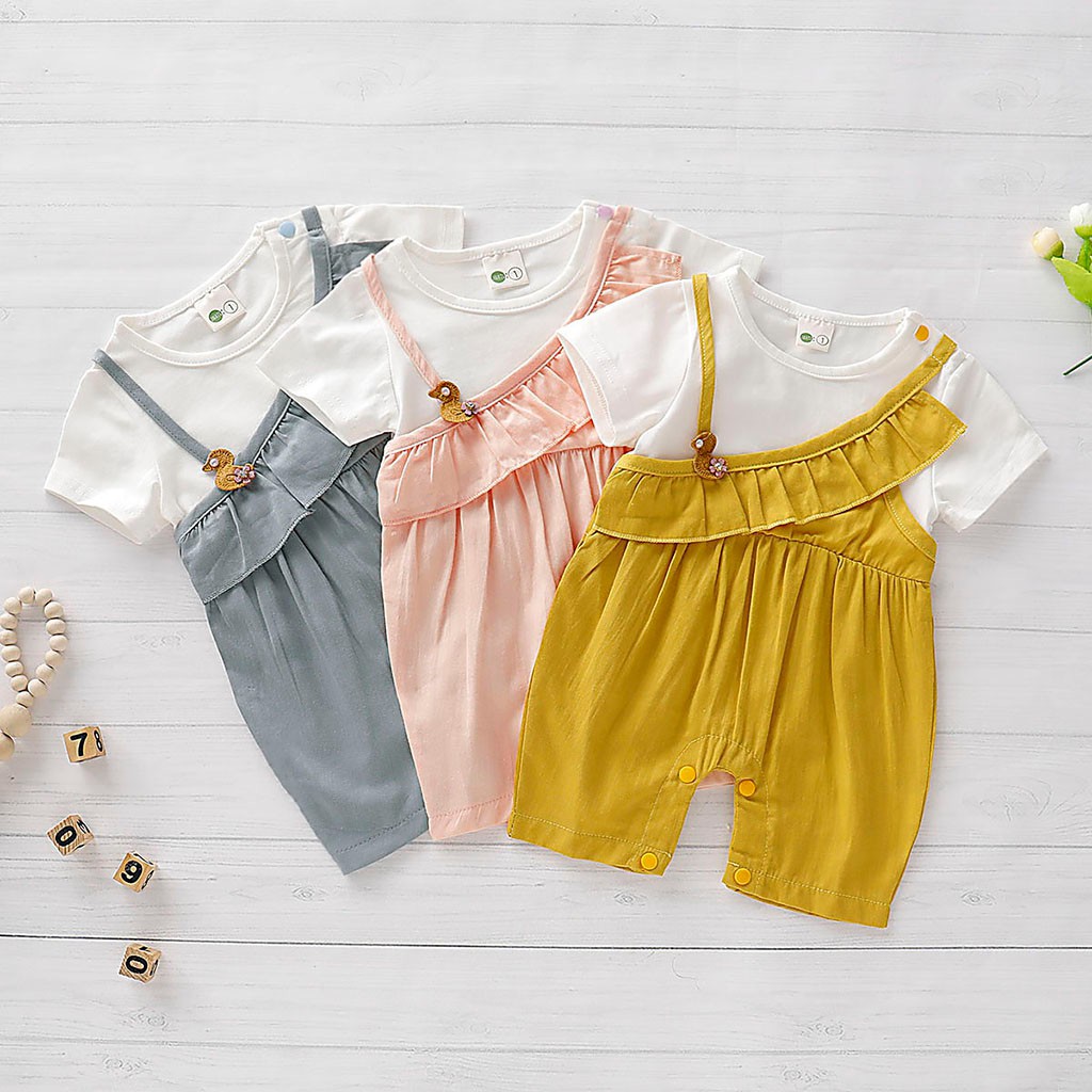 Lengan Pendek Romper Bebek Print Bayi Aksen Perempuan Ruffle Untuk Motif Shopee Indonesia